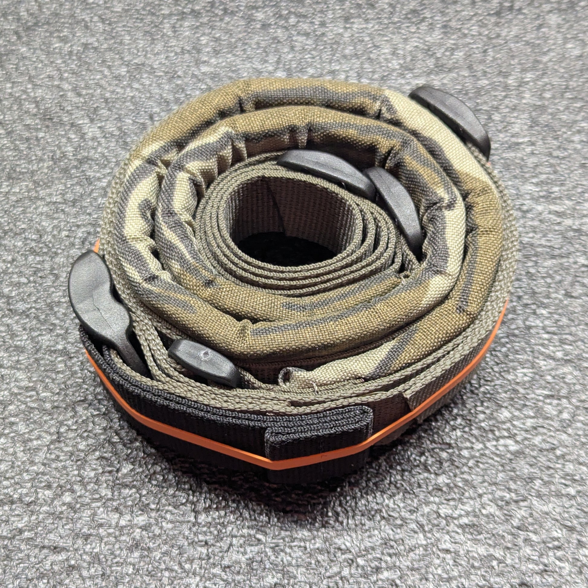 This is a one-off prototype. Webbing was not available in the Mossy Oak Bottomland pattern so Ranger Green was used for the webbing and Black for the hardware.
